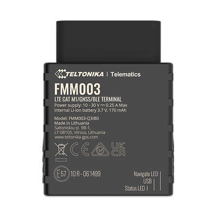 Prix TELTONIKA FMM003 pas cher et meilleur prix c’est un appareil LTE CAT-M1 plug and play avancé dédié à la prochaine génération d’applications OBD. C’est un tracker parfait pour un large éventail de cas d’utilisation – y compris la gestion de flotte de véhicules utilitaires légers, le journal de bord du conducteur, la télématique d’assurance (UBI), la location et le leasing de voitures et plus encore.La principale caractéristique du FMM003 TELTONIKA est sa possibilité de lire les paramètres OEM (PID) via le port OBD. Avec cet appareil, vous pourrez lire les données de l’odomètre réel et du niveau de carburant réel. De plus, notre appareil est livré avec les véhicules pris en charge et la liste des données, donc plus besoin de deviner.